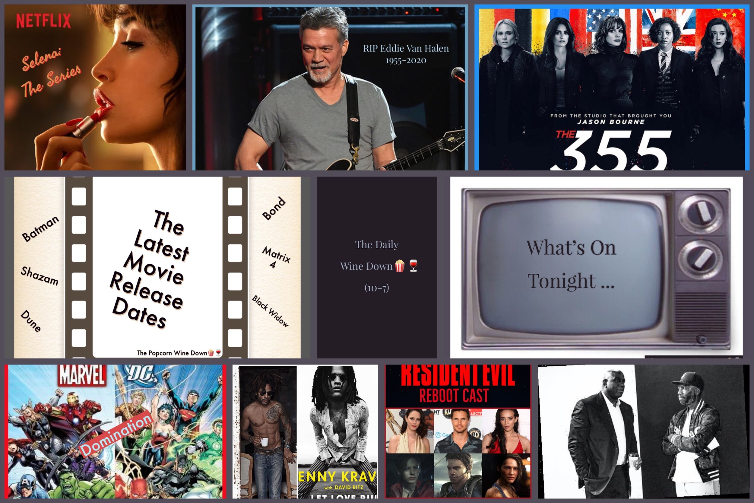 The Daily Wine Down for Wednesday 10-7 Features Eddie Van Halen (RIP); Lenny Kravitz; 355; Selena: The Series; Movie Release Updates; and more
